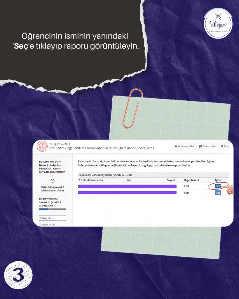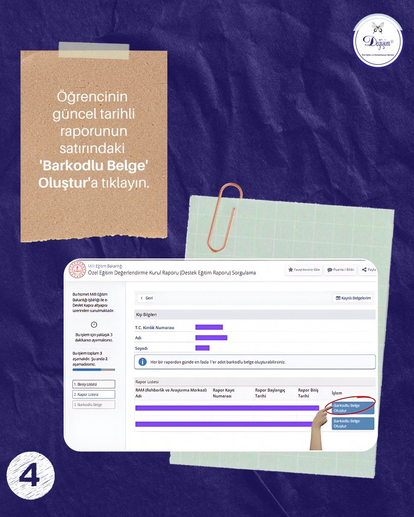 - Özel eğitim ve rehabilitasyon merkezine kayıt yapılabilir